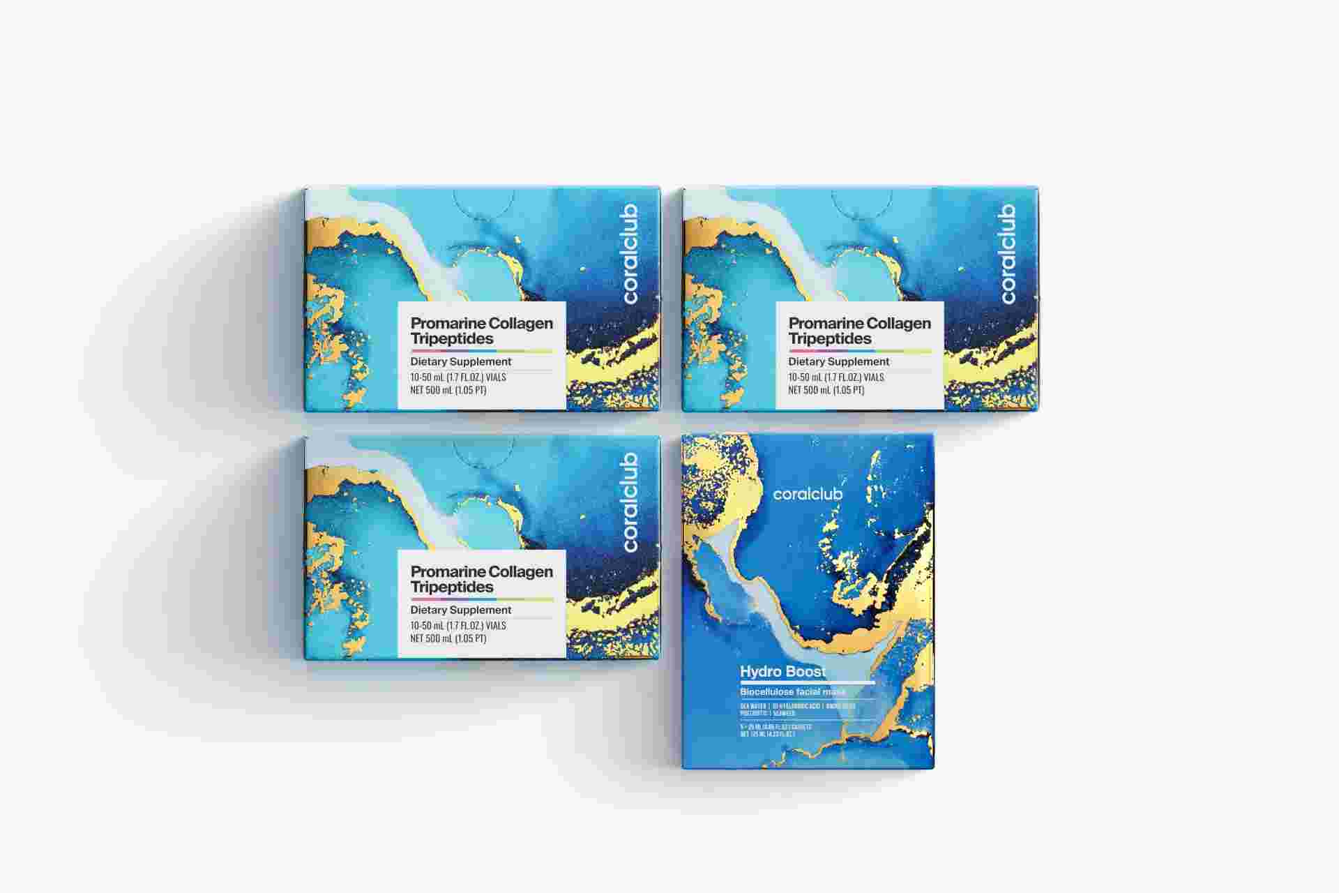 Набор Промарин Трипептиды коллагена (курс на 1 месяц) & маски для лица биоцеллюлозные Hydro Boost (5 саше)
